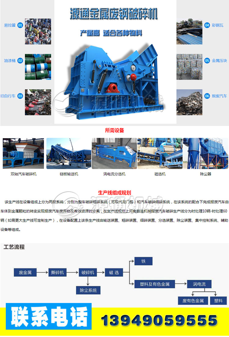 當(dāng)今社會(huì),生活節(jié)奏越來(lái)越快,在快速消費(fèi)品充斥的今天,每天都有很多生活垃圾被廢棄。比如廢舊易拉罐,廢薄鐵皮,廢鐵渣,露露灌,八寶粥罐,和其正罐,金屬瓶,易拉罐,可樂(lè)罐,飲料罐,啤酒罐,紅牛罐,油漆桶,月餅盒,罐頭盒等,甚至一些被淘汰的自行車,摩托車,小轎車,這些都是一些金屬垃圾。由于金屬制品的腐蝕、損壞和自然淘汰,每年都有大量的廢舊金屬產(chǎn)生。如果隨意棄置這些廢舊金屬,既造成了環(huán)境的污染,又浪費(fèi)了有限的金屬資源,為此,如何合理利用廢舊金屬使得廢舊金屬粉碎機(jī)應(yīng)運(yùn)而生。